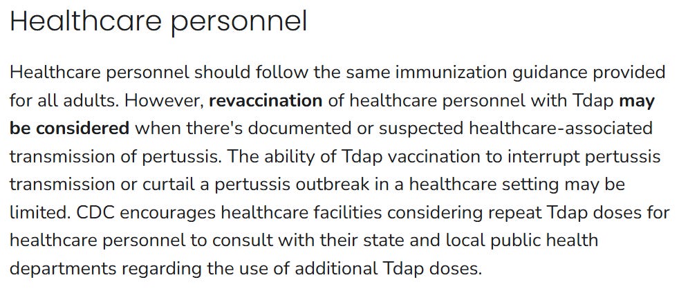 And it seems that CDC added the section “No recommendation for booster doses against pertussis” by September 29, 2024.