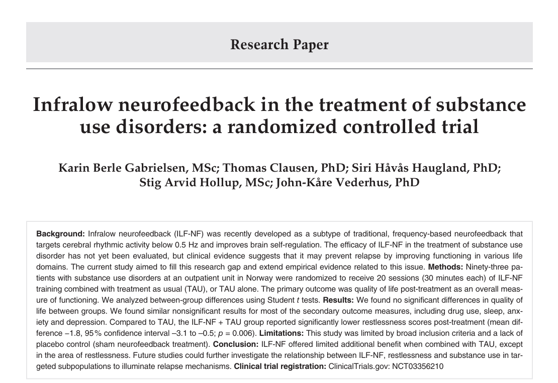 Critique of Gabrielsen et al. (2022): “Infralow Neurofeedback in the Treatment of Substance Use Disorders: A Randomized Controlled Trial”