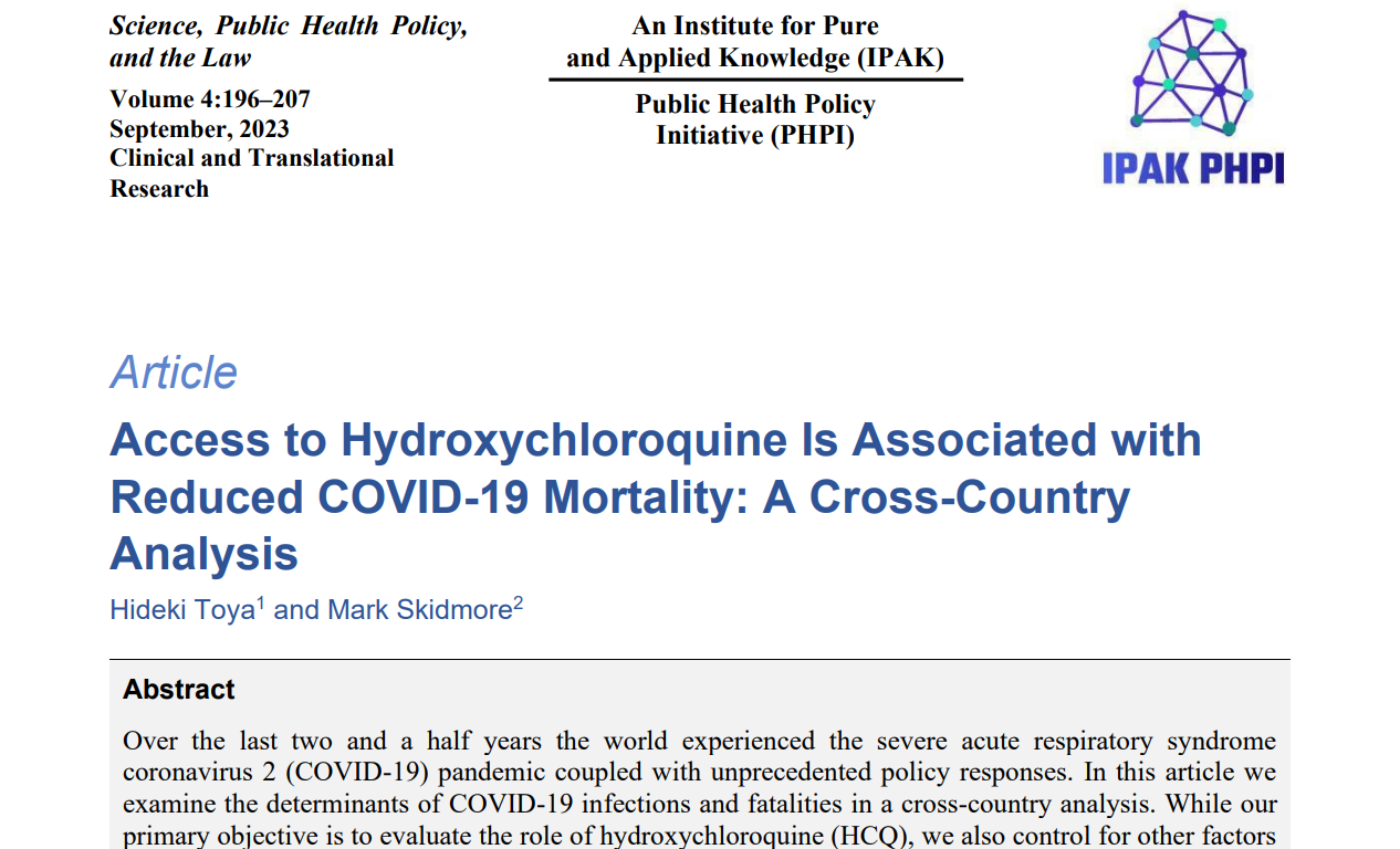 A comprehensive cross-country analysis to identify the factors affecting COVID-19 infections and fatalities found that lack of access to hydroxychloroquine was a major factor in driving COVID-19 deaths. The study, which was published today in the Public Health Policy Research section of the IPAK PHPI open-access journal, Science, Public Health Policy & the Law, controlled for other variables like obesity, urbanization, age, healthcare infrastructure, and policy responses such as lockdowns and travel restrictions.