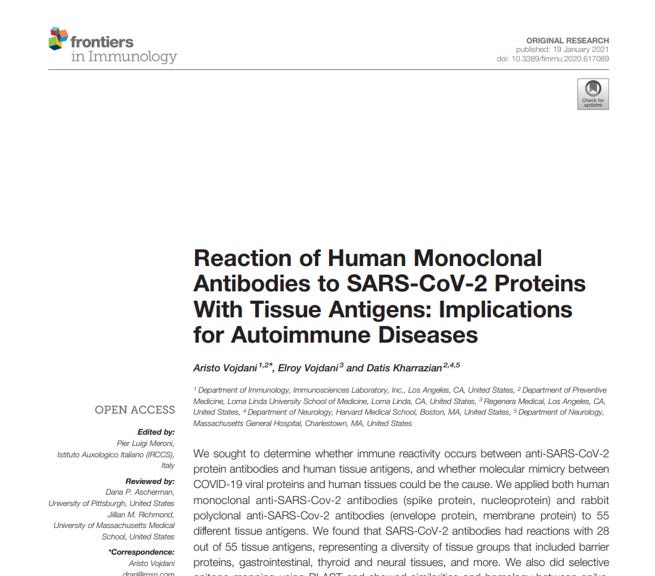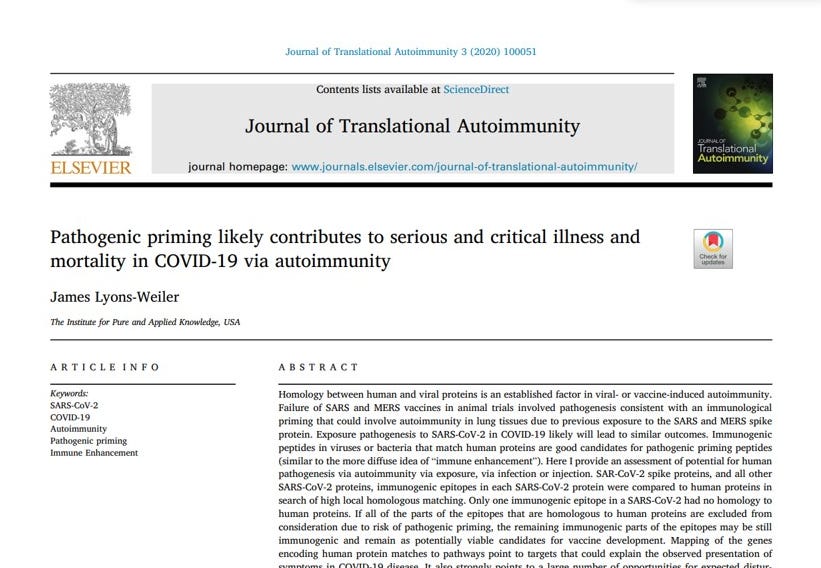 It’s not as though this information is new. There is now a massive literature stemming from my original findings. IPAK was the first to report likely molecular mimicry from unsafe epitopes in SARS-CoV-2 proteins in April 2020.