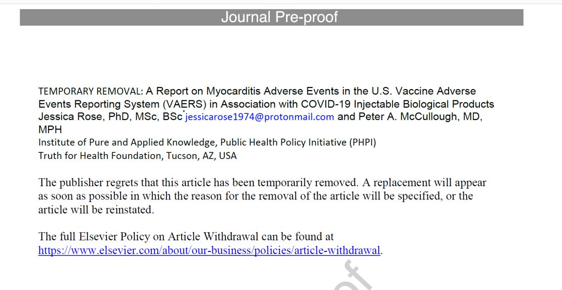 Oh, that’s right, there was. My colleagues Jessica Rose and Peter McCullough had their study accepted, then “unaccepted”, from an Elsevier journal over a difference in interpretation.