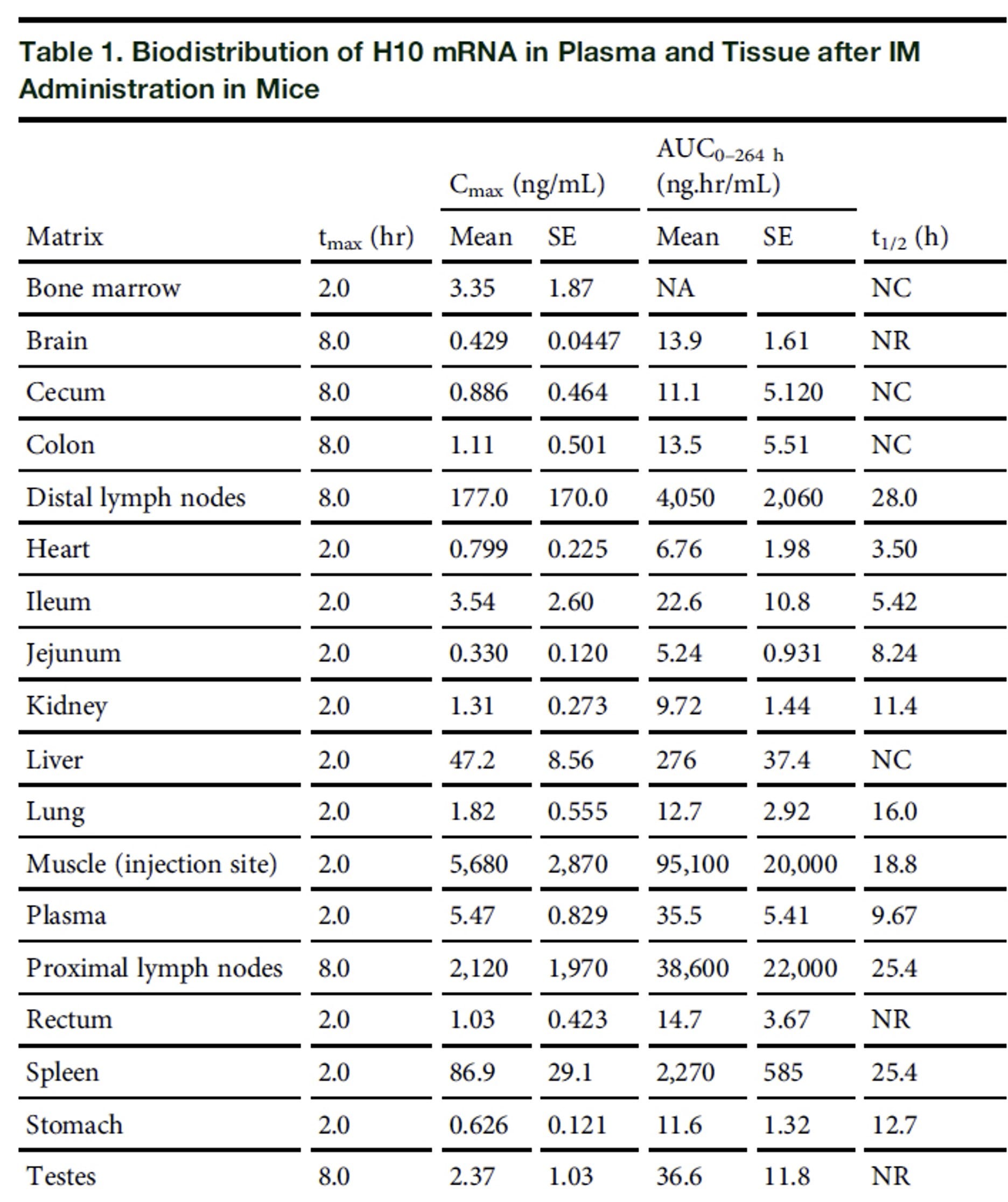 The Bahl et al. biodistribution study, “Preclinical and clinical demonstration of immunogenicity my mRNA vaccines against h10N8 and h7n9 influenza vaccines” is proof they knew that shots of this type would not stay in the muscle. Here’s their Table 1. The date? April 2017.