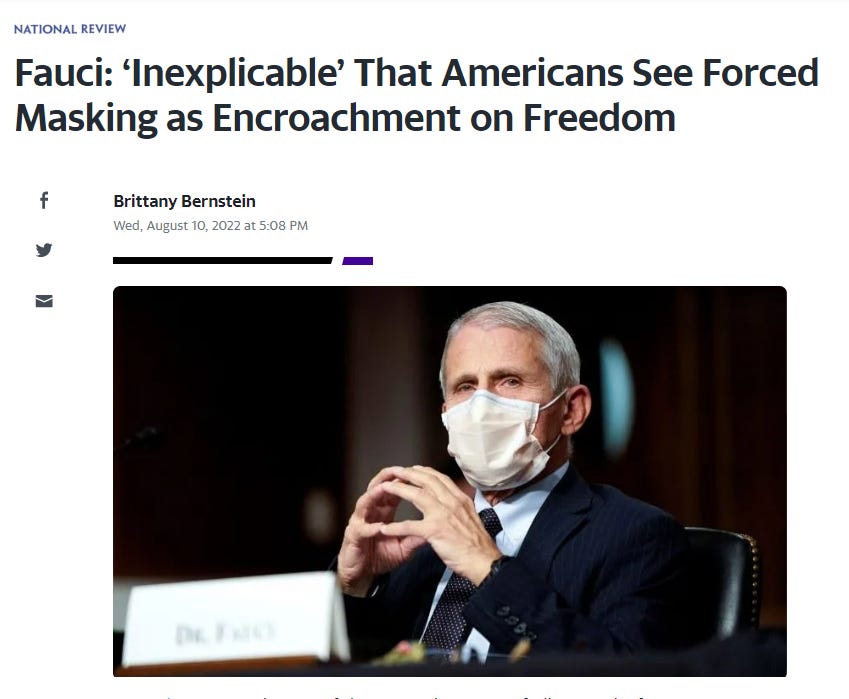 My question is: What exactly happened to make masks a key NPI? Is it political? What did and does Fauci know? There seem to be a lot of holes here that needed to be filled.