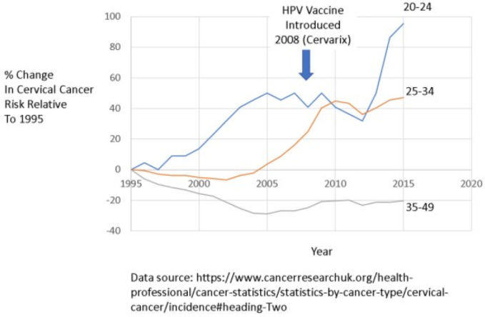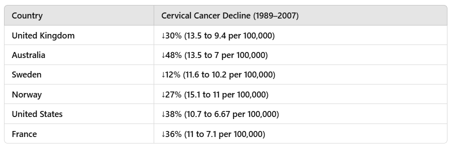 The report acknowledges that screening guidelines have shifted over time, with longer screening intervals and increased reliance on HPV testing rather than cytology alone, but fails to account for how these changes might have affected CIN detection rates independently of vaccination. Given that HPV-related cervical cancer develops over decades, short-term reductions in precancerous lesions do not necessarily translate into long-term declines in invasive cancer, particularly if type replacement is occurring. Countries with high HPV vaccine uptake, including Sweden, the United Kingdom, and Australia, have reported paradoxical increases in cervical cancer rates among young vaccinated women. Meanwhile, in France, where HPV vaccination rates remain low, cervical cancer rates have continued their steady decline, suggesting that screening—not vaccination—may be the primary driver of reduced incidence.