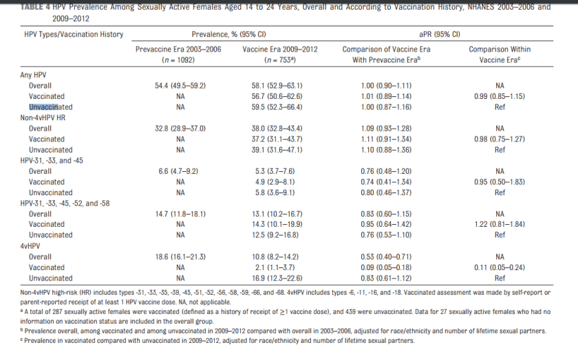 The study reported no net change in HPV infection rates, yet, clearly, HPV-vaccine-associated types decreased. Thus, the only possible conclusion is the HPV types not targeted by the vaccine increased.
