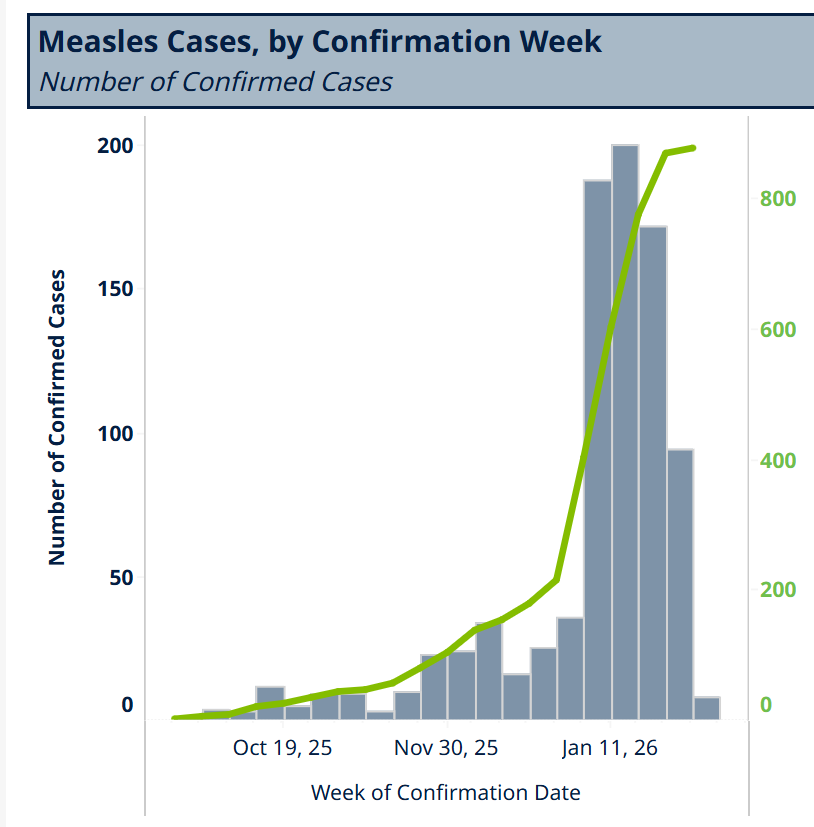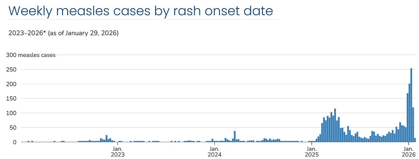 As of early 2026, a glance at the CDC’s measles rash-onset curve suggests the storm may be passing. The final few bars are low. But whether it is ending takes bit more time.