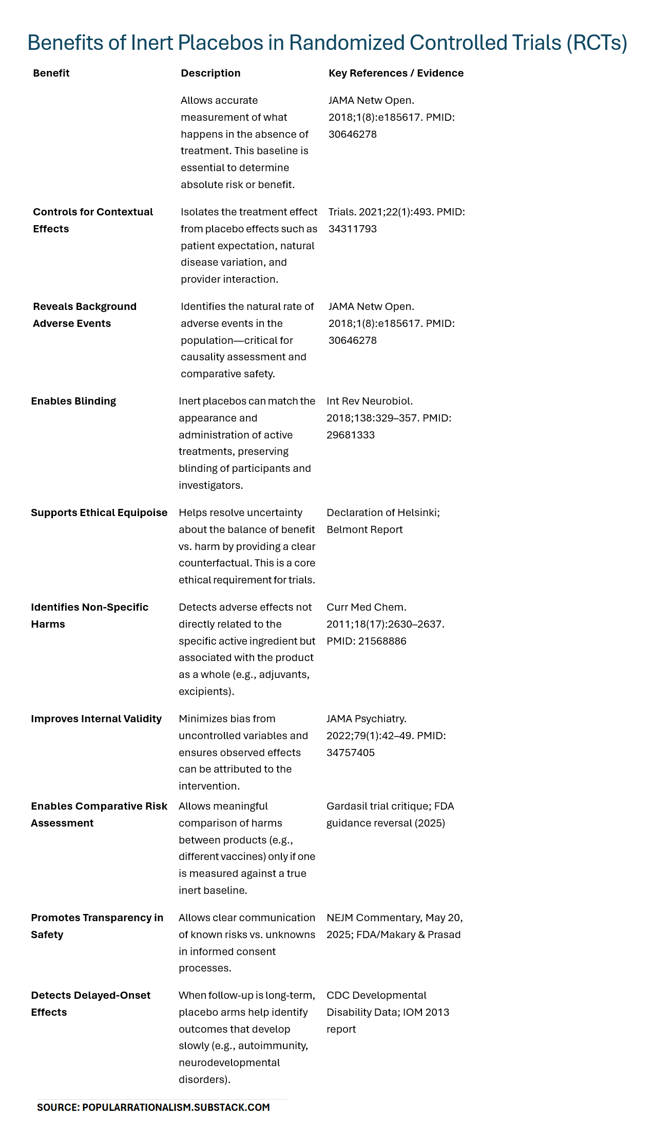 And even when true placebo (e.g., saline) groups are used, the assumption that placebo groups are harm-free is incorrect. This is why baseline adverse event (AE) rates from properly designed placebo-controlled trials are vital for any honest safety assessment.