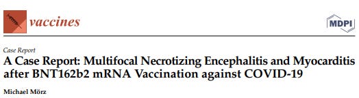 To those people who have been encouraged, pressured, even mandated to receive COVID vaccination—physicians and scientists owe a massive top priority collaborative effort to thoroughly study the pathogenesis (the causative chain of events that lead to disease) and potential treatment of vaccine-induced endotheliopathy, vasculitis, encephalitis, and myocarditis—even if these complications prove to be rare. The death of the 76-year-old man reported by Dr. Mörz should not go in vain. We need to determine how to promptly recognize and promptly provide optimal early treatment for vaccinated people who may be developing early evidence of similar complications in their brain, heart, both, and/or elsewhere.