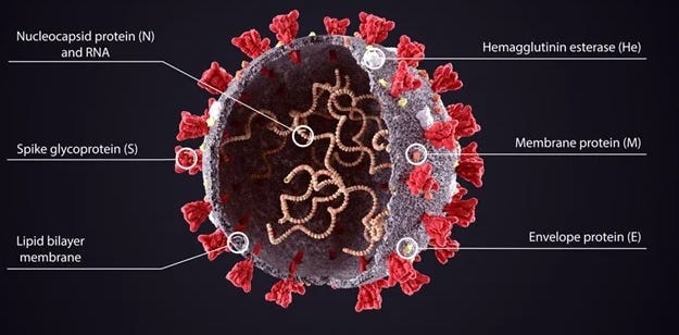 Nucleocapsid protein: Nucleocapsid protein is located inside the spherical SARS-CoV-2 virus. It is very different from the spike protein. The mRNA vaccines do not instruct cells to make nucleocapsid protein. Accordingly, the mRNA vaccines do not result in production of antibody to nucleocapsid protein. When a person is infected with the actual virus, both the spike protein and nucleocapsid protein will be present and the person will usually produce antibodies to both proteins. See image below.