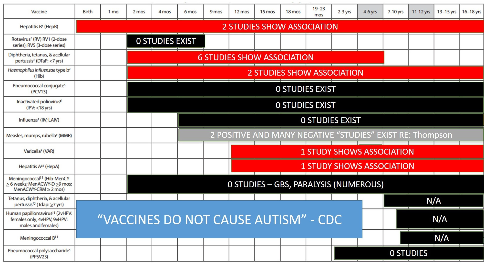 But this is an impossible knowledge claim: not all vaccines have been studied for causal links to autism.