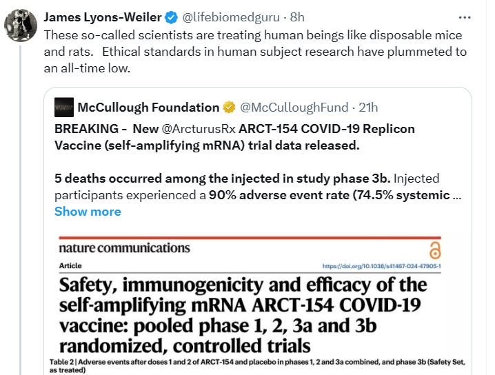 So, yes, vaccine researchers treat human beings like disposable mice and rats. Ethical standards in human subject research have indeed plummeted to an all-time low.