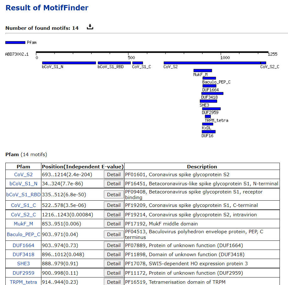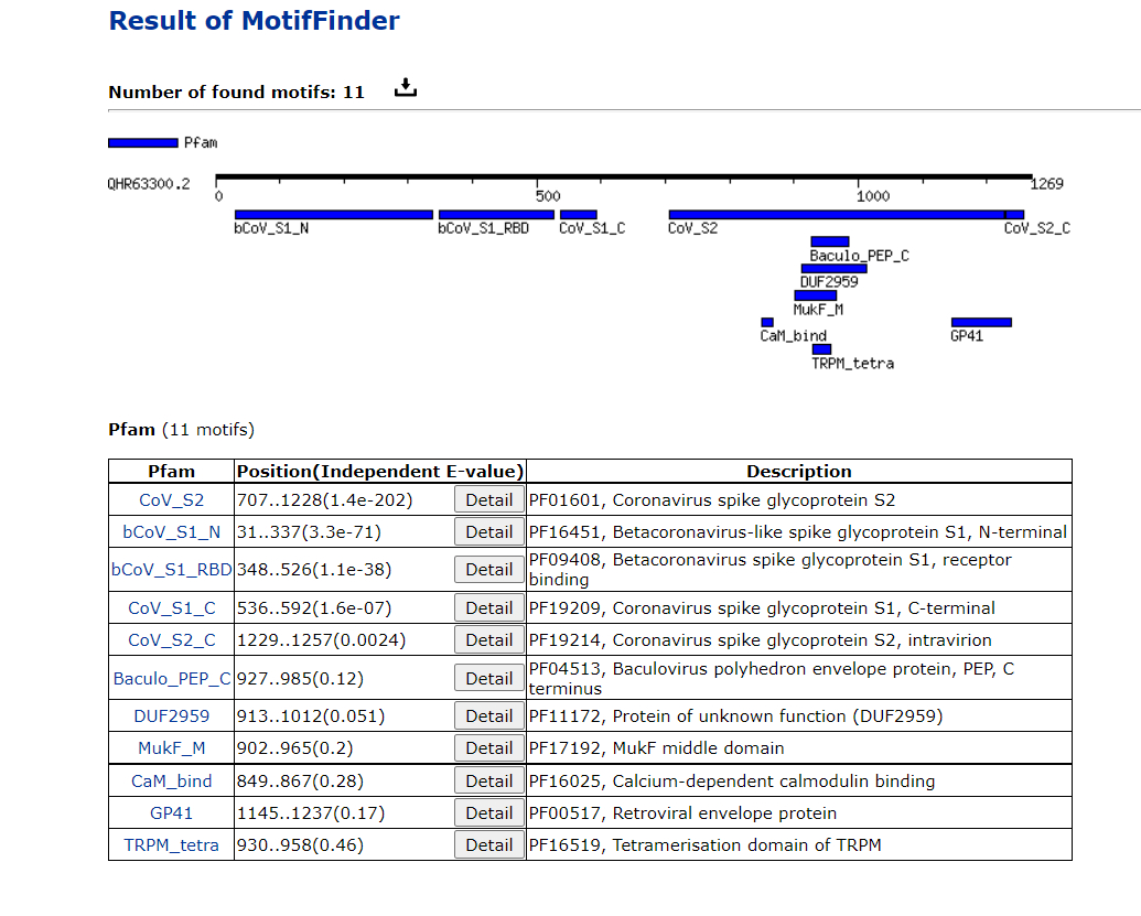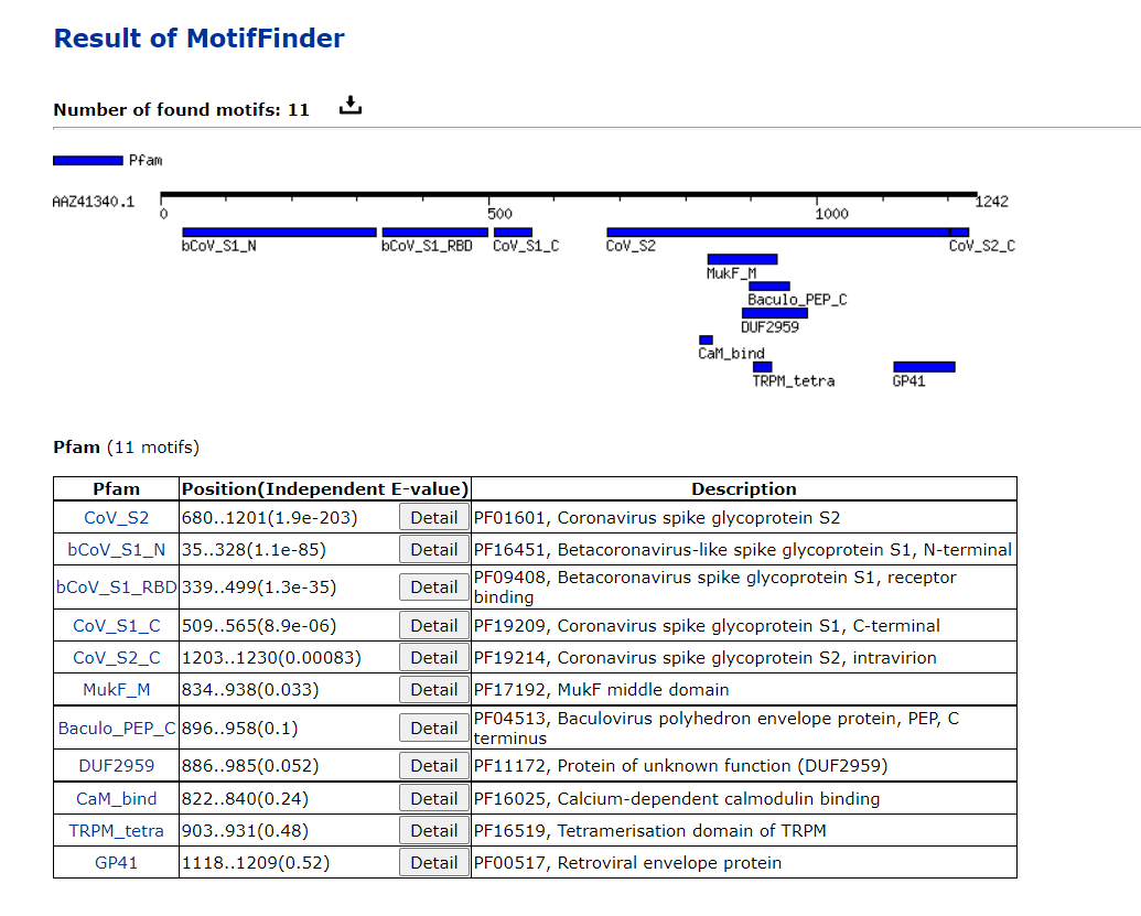 LKGVKLHYT Here’s a SARS spike protein sequence and its motif pattern for comparison: