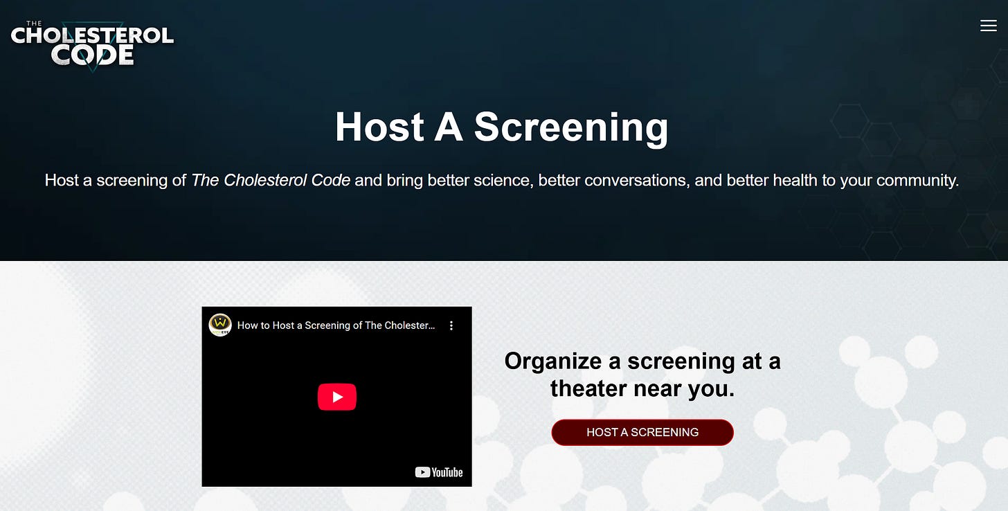 “You can now bring THE CHOLESTEROL CODE movie to your community by hosting a screening. This movie is about how people reverse disease and dramatically improve their health using a ketogenic diet--EXCEPT, their LDL-cholesterol goes up. What to do? This decision is agonizing for many people. Should LDL-C determine what we eat?