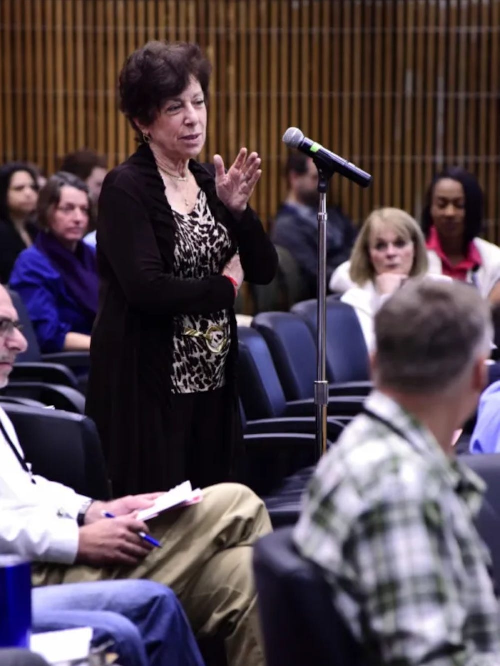 Birnbaum asks questions after a presentation during an NIEHS “Science Days” event in 2017. Birnbaum joined the federal government in 1979 and rose quickly, overseeing high-profile PFAS research at the EPA in the 1980s. Visual: NIEHS/NIH