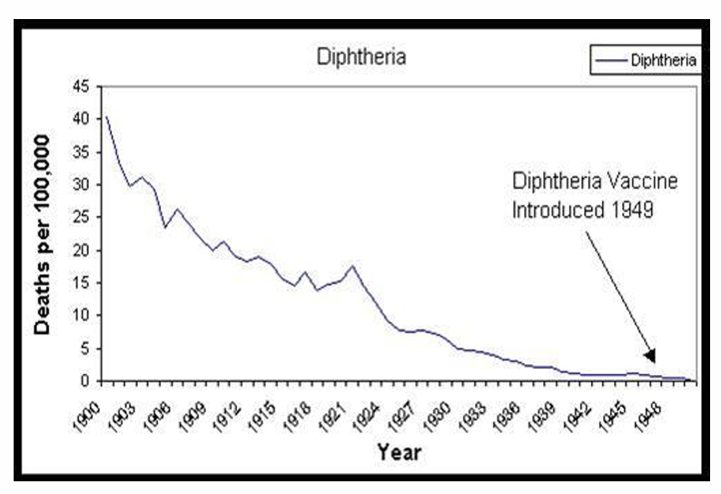 “What has contributed historically to the decline of scourges like smallpox, polio, tetanus, measles, and diphtheria? Although many attribute the decreased incidence of these diseases to the introduction of vaccines, a look at the epidemiological data indicates that many, if not most, infectious diseases started declining noticeably prior to the introduction of their vaccines due to significant improvements in the way we live. Sanitation, proper sewage disposal, clean water, improved nutrition, indoor plumbing, less-crowded living conditions, elimination of child labor and better hygiene were the real reasons that infectious rates waned.