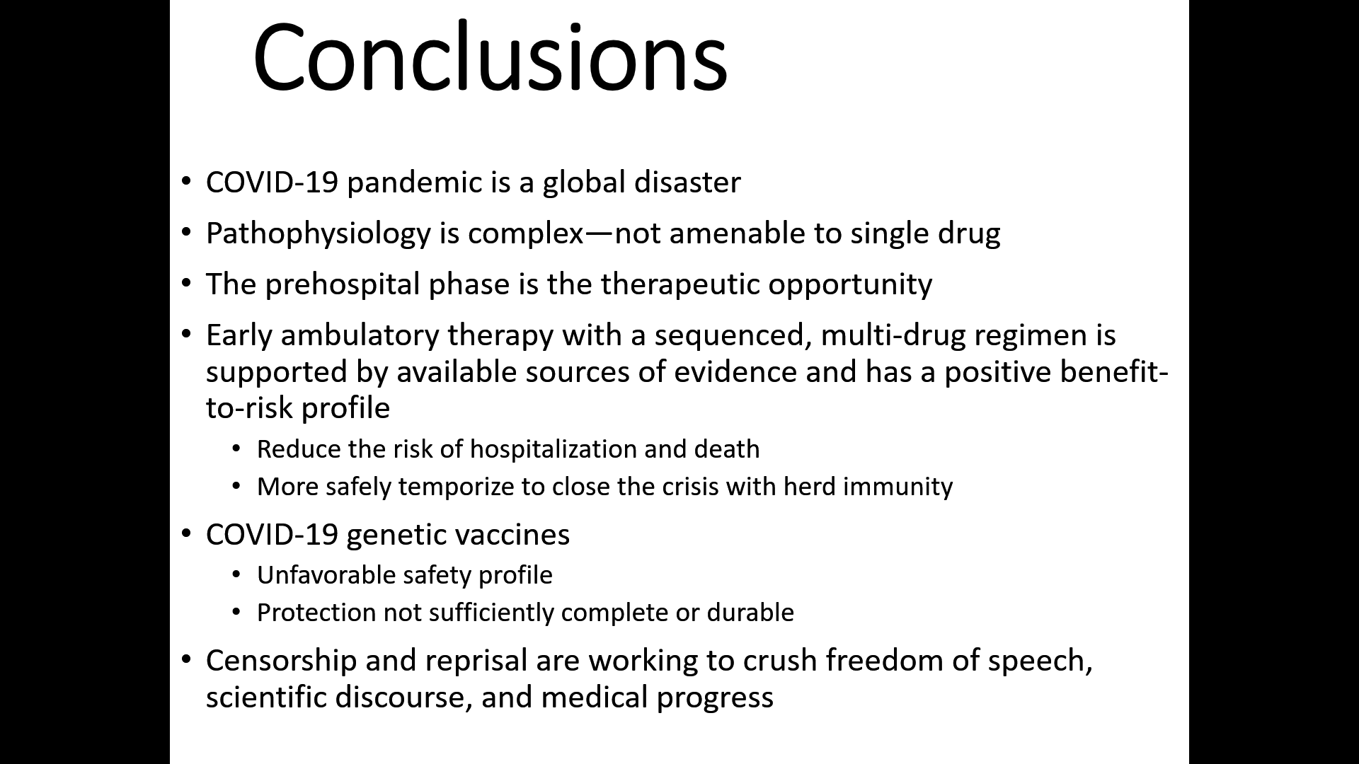 This is second of two articles sharing all of the slides from Dr. McCullough’s tireless 2-hr presentation at the Michigan Summit. I am sharing these with you in this format so you can forward to physicians and other parties. Let the data speak for themselves.