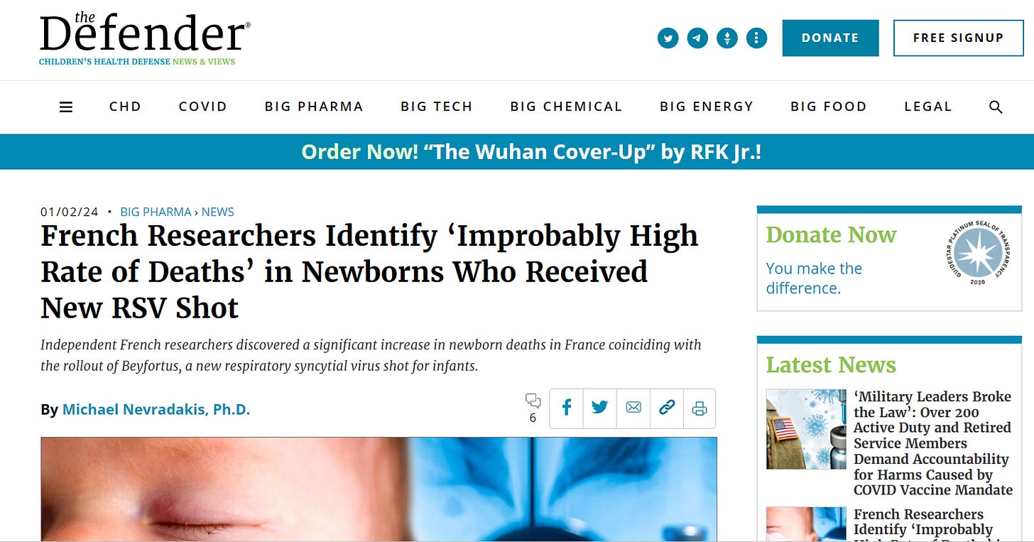 THE DEFENDER:French Researchers Identify ‘Improbably High Rate of Deaths’ in Newborns Who Received New RSV Shot