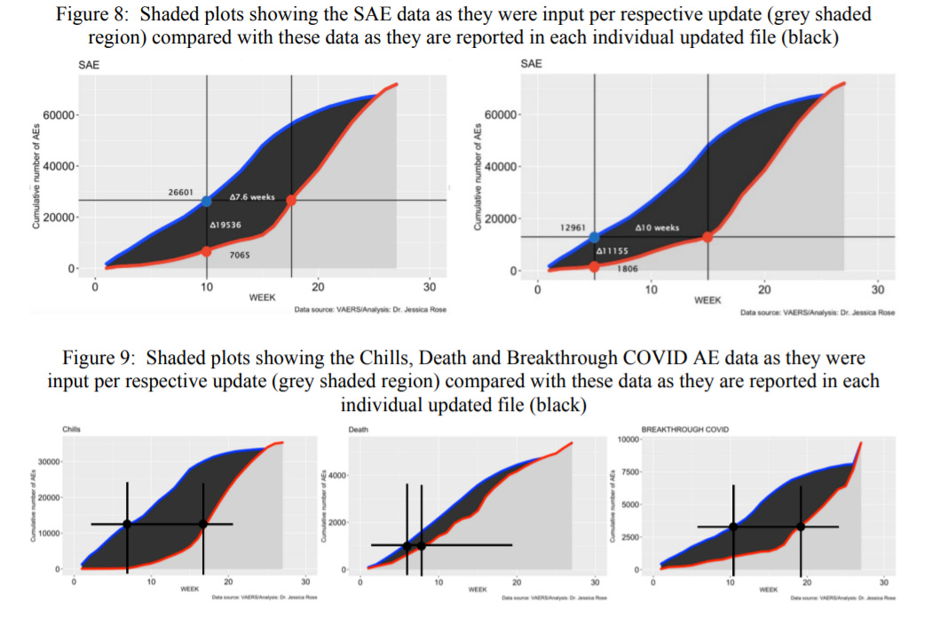 Finally, there is the issue of a longer delay in serious adverse event reporting in the HHS’ Vaccine Adverse Events Reporting System. In a very clever analysis, Dr. Jessica Rose (also from IPAK) showed that in the weeks and months coming up to important regulatory decisions by FDA (Pfizer vaccine approval, boosters), those managing VAERS held back data on serious adverse events (SAEs). In comparing SAE reporting lag times to a control mild adverse event, Dr. Rose found that