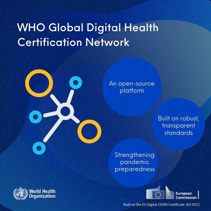 In July 2023, the World Health Organization (WHO) adopted the EU digital COVID-19 passport system “to establish a global system that [would] help protect citizens across the world from on-going and future health threats, including pandemics.”