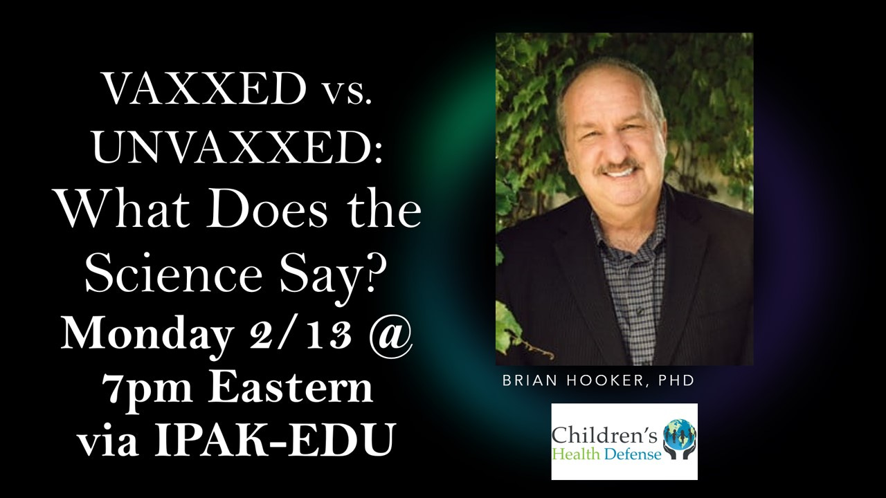 Dr. Brian Hooker of Children’s Health Defense will be presenting “Vax vs. Unvax: What Does the Science Say?” on Monday, 2/13/2023. Dr. Lyons-Weiler and Don Najita will host.